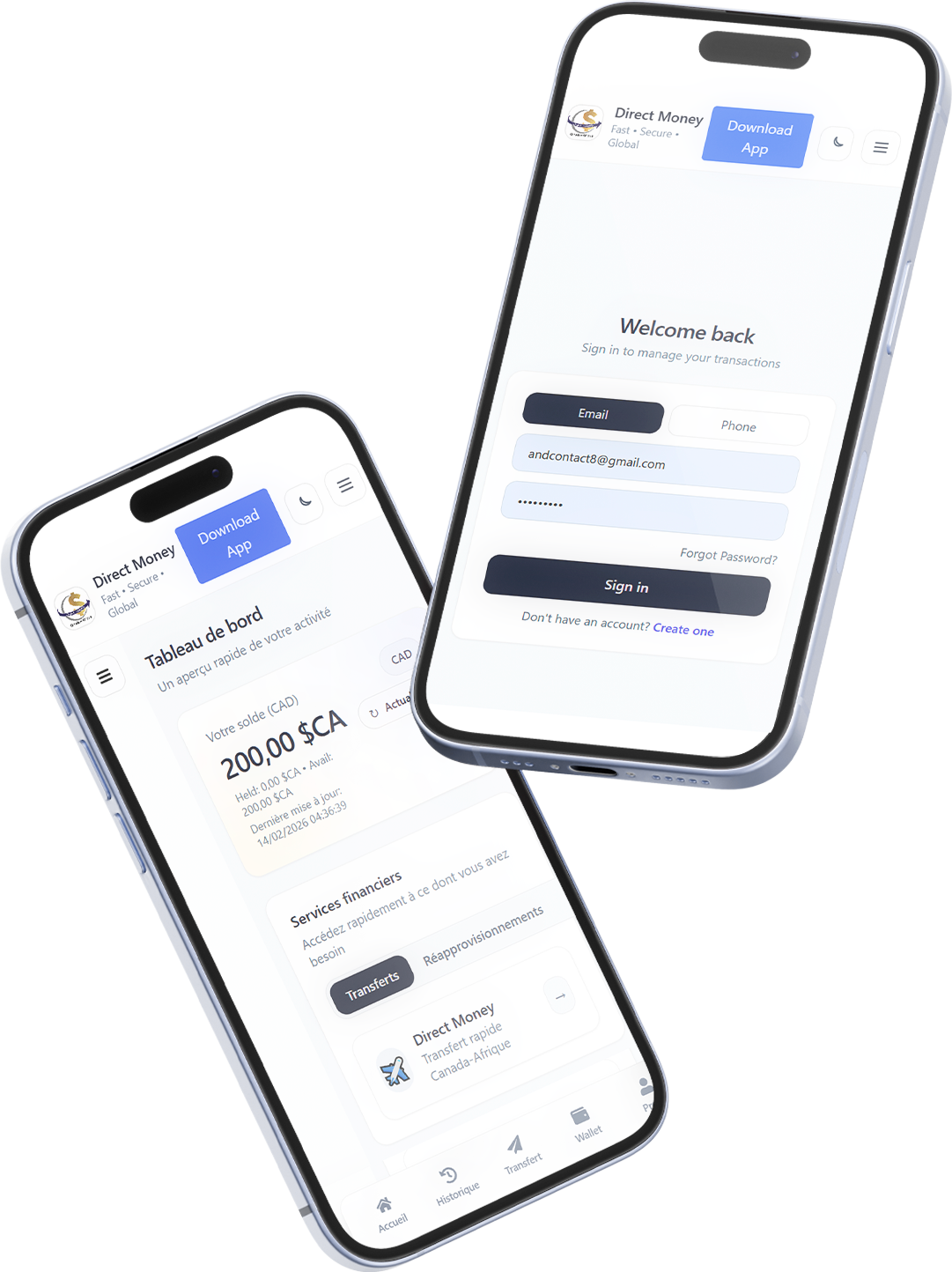 Transférer de l’argent en quelques secondes du CANADA vers l'AFRIQUE et de l'AFRIQUE vers le CANADA à des taux conccurentiels